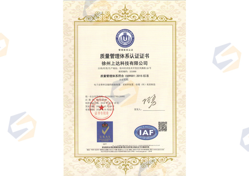 質量管理體系認證證書