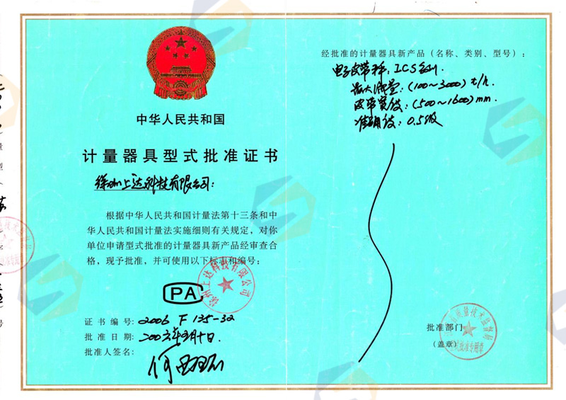 計量器具型式批準證書